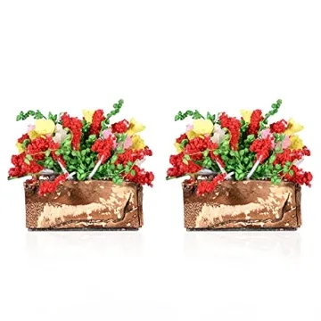 The GOUHRRY package includes two pieces of beautifully crafted flower bonsai plants at a 1:12 scale.