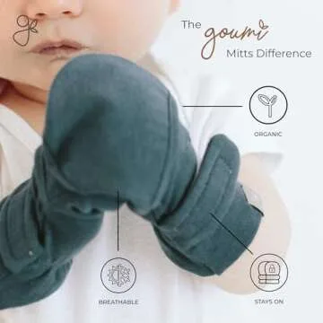 Show moreIntroducing the **Goumi Baby Mitts** – the ultimate solution for keeping your newborn's delicate skin safe while ensuring their comfort and warmth. Designed with both parents and babies in mind, these anti-scratch mittens are made from organic materials that are gentle on the skin. The mitts feature a **signature two-part closure** that ensures they stay securely on your baby’s hands, even as they grow. With stylish and purposely designed accents, including a reversible black and white patterned side, these mitts are not just functional; they also provide visual stimulation for your little one, making them a perfect developmental aid.