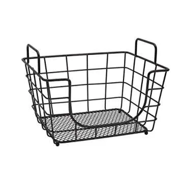 Gourmet Basics by Mikasa Madam Metal Stacking/Nesting Rectangular Basket with Acacia Lid, Antique Black