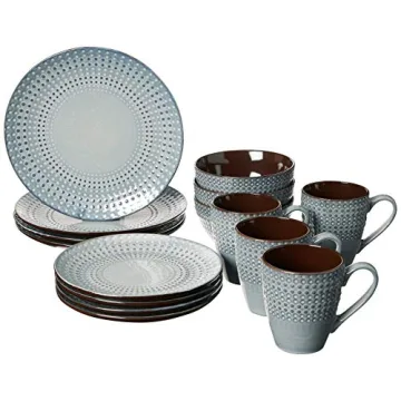 Show moreIntroducing the Gourmet Basics by Mikasa Riley 16 Piece Dinnerware Set, the perfect blend of style and functionality for your dining experience. Designed for everyday use, this stunning set comes in a delightful blue hue that adds a touch of elegance to any table setting. With 4 each of 10-1/2 inch dinner plates, 8-1/2 inch salad plates, 6-inch bowls, and 14-ounce mugs, this set provides everything you need to host a lovely meal with family and friends. Crafted from high-quality stoneware, this dinnerware is not only durable but also stylish, making it ideal for any occasion.