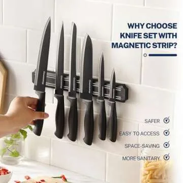 Gourmetop Kitchen Knife Set with No Drilling Magnetic Strip, Knives Set for Kitchen Black Cooking Knives, Sharp Stainless Steel Chef Knife Set for Cutting Meat & Vegetable, Small Knife Set