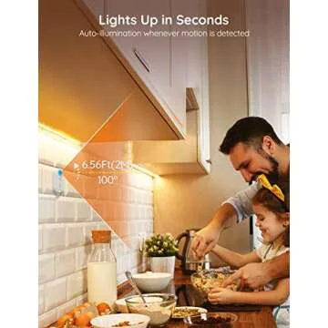 Show moreTransform your living space with the Govee Under Cabinet Lights! Designed to redefine your home illumination, these 6.56ft motion sensor LED light strips provide a soft warm white glow that is perfectly suited for any environment. The warm 3000K color temperature not only brightens your closet or kitchen but creates a serene ambiance, making your spaces more inviting. With a remarkable motion detection range of 6.56ft, these lights turn on instantly when movement is detected and power off automatically after 15 seconds of inactivity, ensuring energy efficiency while providing the perfect lighting when needed the most.