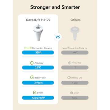 Introducing the GoveeLife Smart Pool Thermometer, your ultimate solution for precise water temperature monitoring anytime, anywhere! Equipped with a robust WiFi gateway, this innovative tool boasts a remarkable connectivity range of up to 328 feet (100 meters). With the companion app, you can monitor your water temperature data in real time whether you are relaxing indoors or enjoying a tranquil day by the pool. The ability to pair with up to 10 sensors...