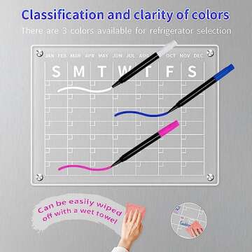 Show moreIntroducing the GR Smith Magnetic Acrylic Calendar for Fridge, your ultimate solution for seamless daily planning! Crafted with a focus on both functionality and style, this clear dry erase calendar board set transforms your refrigerator into a central hub for organization. Designed to cater to busy households, students, and professionals alike, this reusable calendar is perfect for managing your life, keeping track of important dates, and fostering a more structured lifestyle. Measuring 16"x12" inches, it’s perfect for any kitchen space, and its sleek look ensures it complements your decor beautifully.