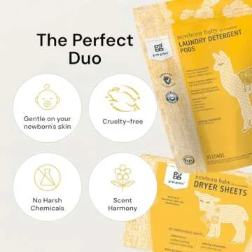 Grab Green Newborn Baby Laundry Detergent Pods and Dryer Sheets Bundle, 30 Count Pods and 40 Dryer Sheets, Calming Chamomile Scent, Plant and Mineral Based Laundry Care Set
