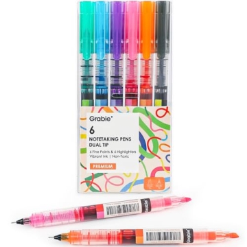 Show moreTransform your writing experience with the Grabie Dual Tip Brush Pens, a vibrant set designed for versatility and precision. This set includes **six stunning pens**, featuring both a **3.5mm chisel tip** for bold highlights and a **0.5mm needle tip** for intricate writing. With a clear barrel, you can easily monitor ink levels and avoid interruptions during your creative process. These pens are not only stylish but also expertly crafted for **smooth performance**, ensuring that whether you’re jotting down notes or adding colors to your creative projects, you’re making every stroke count. The vibrant array of colors emits a sense of fun while offering practical functionality that enhances note-taking and artistic expression.
