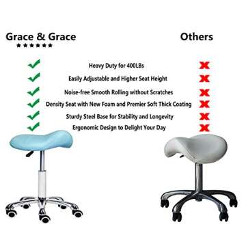 Grace & Grace Professional Saddle Stool Series Hydraulic Swivel Comfortable Ergonomic with Heavy Duty Metal Base for Clinic Dentist Spa Massage Salons Studio (Green)
