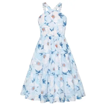 The dress is adorned with eye-catching floral patterns or classic swiss dots on solid colors, adding just the right amount of charm and liveliness. Designed for ease, the sleeveless configuration coupled with a stretchy pull-on closure and elastic waistline means getting dressed is a breeze—your little one will be ready for a day filled with fun in no time! Whether heading to the park, a birthday party, or a family gathering, this dress guarantees your child will shine with confidence.