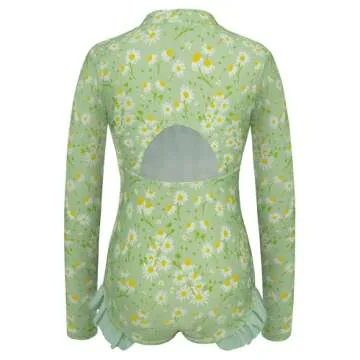 GRACE KARIN Girls Bathing Suits Size 10-12 One Piece Long Sleeve Swimsuits Beach Swimwear