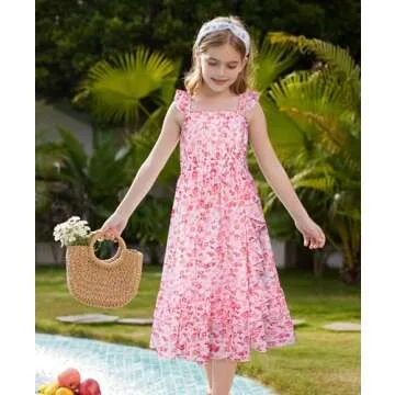 Show moreIntroduce your little one to a world of elegance with the GRACE KARIN Girls Dress. This stunning Pink Summer Chiffon Hawaiian Holiday Birthday Party Sleeveless Maxi Dress is meticulously designed, boasting a chic square neck and a trendy cross-back style that effortlessly blends comfort with sophistication. With adjustable straps, this dress is tailored for a perfect fit, while the charming smocked waist and playful ruffle details add a whimsical touch to her wardrobe. The delightful A-line silhouette flows beautifully, making it an essential piece for every little fashionista.