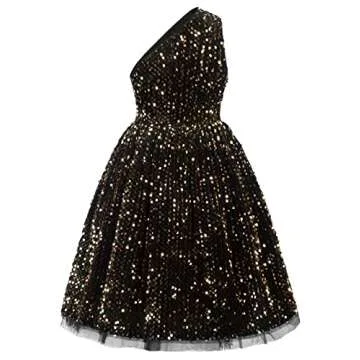 GRACE KARIN Girls Sequin Dress One Shoulder Flower Girl Dress Wedding Party Gown Black Gold 10Y