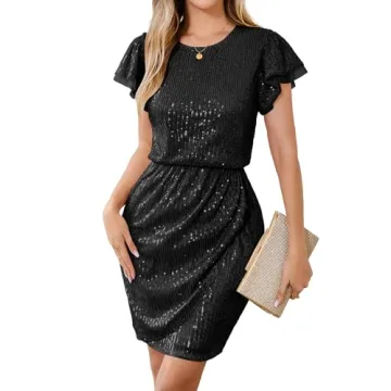 GRACE KARIN Glitter Sexy Black Sequin Dress for Women Fashion Cap Sleeve Evening Party Holiday Dresses for Women Black M