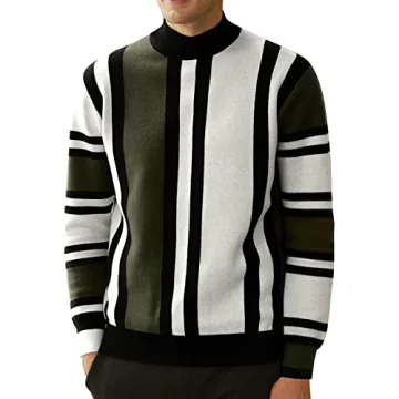 GRACE KARIN Mens Vintage Mockneck Striped Pullover Sweater – A Stylish Jumper for All Occasions