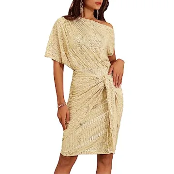 GRACE KARIN Sequin Dress for Women Sexy One Shoulder Cocktail Party Bodycon Dress Gold S