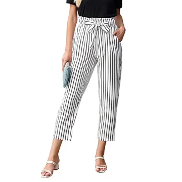 GRACE KARIN Women Pants Striped High Waist Cropped Pants for All Occasions