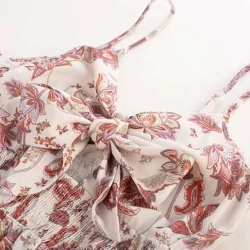 GRACE KARIN Women's 2025 Summer Beach Dress Floral V Neck Tie Front Spaghetti Strap Flowy Long Dress Boho Maxi Dress