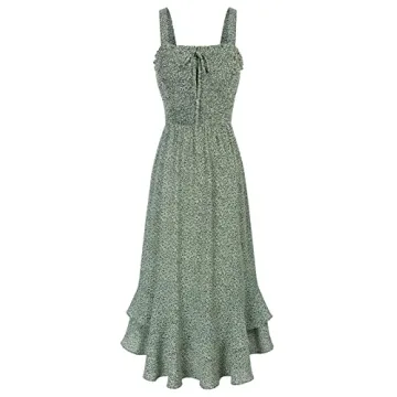 Show moreIntroducing the elegantly crafted **GRACE KARIN Women's 2025 Summer Floral Boho Dress**, a delightful fusion of style, comfort, and versatility. This stunning max dress showcases a vibrant floral print that captures the spirit of summer, making it an *essential choice for outdoor gatherings, beach days, or casual brunches*. Its breathable **elastic smocked design** not only ensures a flattering fit but also grants the freedom to move with grace, whether you're dancing or enjoying a stroll. The alluring **open back** and *adjustable button straps* allow you to personalize your fit, catering to various body types and preferences. Designed with **lovely tiered ruffles** cascading down, this dress adds an effortless touch of bohemian charm to your wardrobe.