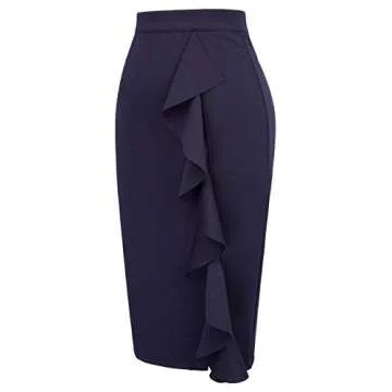 GRACE KARIN Women's Bodycon Pencil Party Ruffle Pencil Skirt Size XL Navy Blue