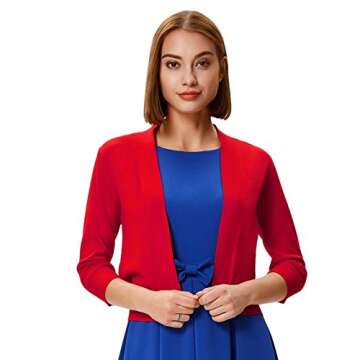 GRACE KARIN Women's Classic 3/4 Sleeve Shrug Tunic Red Cardigan Short Sweaters for Dress (Red,M)