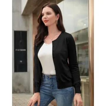 GRACE KARIN Women's Classic Long Sleeve Knit Cardigan Sweaters Casual Open Front Button Down Cardigan S-3XL