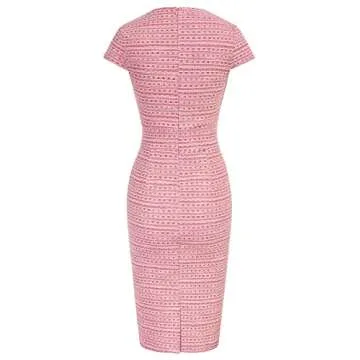 GRACE KARIN Women's Pink Dress Elegant Cap Sleeve Tweed HIPS-Wrapped Pencil Dress for Cocktail