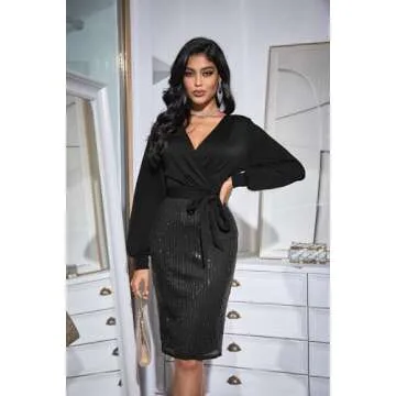Show more If you are in search of the ultimate statement piece to elevate your wardrobe, look no further than the GRACE KARIN Women's Sequin Bodycon Dress. This chic long sleeve pencil dress is meticulously crafted to ensure you shine at any cocktail party or special celebration, effortlessly blending elegance with a touch of glamour. Imagine stepping into a room with a classic V neckline that enhances your silhouette and exudes confidence while ensuring total comfort with its flattering fit. The bodycon design is perfect for showcasing your curves, while the long sleeves provide just the right amount of coverage for cooler evenings.