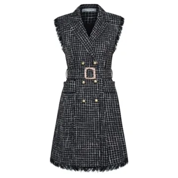 Show moreIntroducing the GRACE KARIN Women Tweed Sleeveless Lapel V Neck Button Down Vintage A-Line Dress, an elegant addition to any woman’s wardrobe. Crafted with quality materials, this black tweed dress is designed to cater to modern fashion needs, seamlessly transitioning from casual outings to more formal events. The stylish lapel V neck design adds sophistication, while the matching belt enhances your silhouette for a personalized fit. Perfect for those who appreciate versatility and timeless style, this dress is sure to become a favorite!