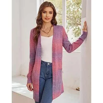 GRACE KARIN Womens Rainbow Sweater Open Front Lavender Haze Outfit Long Sleeve Cardigan with Pockets