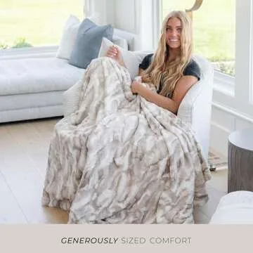 GRACED SOFT LUXURIES Softest Throw Blanket Warm Elegant Cozy Fluffy Thick Comfy Soft Faux Fur for Home, Couch, Sofa, Bed (Marbled Ivory, Large 50" x 60")