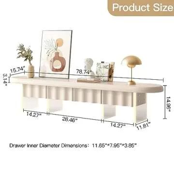 Show moreIntroducing the GraceNook Modern 70 Inch White TV Stand, an exquisite blend of functionality and aesthetic charm designed for the modern living room. This unique TV stand features a stunning cream color body that complements the romantic ripple wood drawers and durable acrylic support legs, ensuring that your space radiates grace and sophistication. Measuring 70 inches, it provides ample space for your television and decor items while being the perfect focal point in any room. The intriguing design and superior materials make this TV stand not only visually appealing but also a long-lasting piece of furniture that can elevate your home interiors.