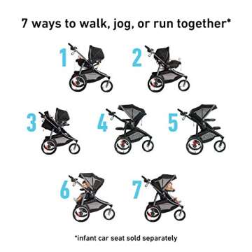 This outstanding stroller is compatible with all Graco Infant Car Seats, which makes transitioning from car to stroller simple and seamless (note: infant car seat sold separately). It boasts an impressive suite of features tailored for an active lifestyle. The air-filled rubber tires provide a comfy ride over various terrains, while the built-in suspension system ensures that bumpy paths won’t disrupt your child's journey. Safety is paramount, and the stroller comes equipped with a safety tether and bright red reflectors for optimal visibility.
