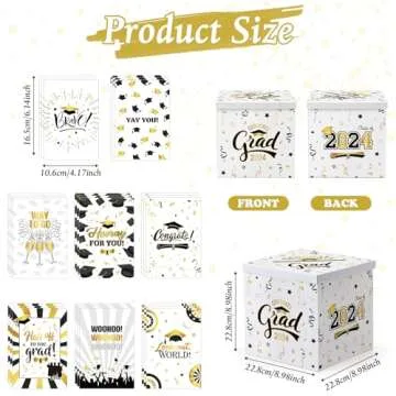 Graduation Card Box Class of 2024 Boxes Congratulations Grad Card Boxes Treat Boxes and 24 Pcs Graduation Gift Greeting Cards for College High School Ceremony Graduation Party (Black and Gold, Cool)