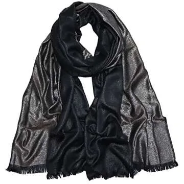 Gragengs Women's Sparkling Metallic Pashmina Shawls and Wraps Long Party Scarf Solid Color Two Tone,Black/Silver
