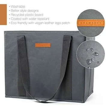 Show more Introducing the ultimate solution for eco-conscious shoppers: our innovative reusable grocery bags made by Gramercy Kitchen Co. While many reusable bags succumb to spills and breakage, ours stand strong with reinforced sides and bottoms, guaranteeing durability and longevity. Unlike typical bags that trap spills, our unique design features a water-repellant film, making them washable either by hand or gentle cold cycle, ensuring they stay as good as new no matter how many grocery trips you make!