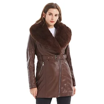 GRAN ORIENTE Brown Faux Leather Jacket for Women with Faux Fur Collar