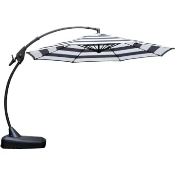 Show moreIntroducing the Grand Patio 11 FT Cantilever Umbrella, a perfect blend of elegance and functionality designed to elevate your outdoor space. This stunning umbrella features a unique curved pole design that not only looks stylish but also offers exceptional stability and support. Crafted with a heavy-duty polyester canopy, it is made to withstand the elements, providing you with reliable shade against both water and UV rays, season after season. The durable, powder-coated aluminum frame ensures long-lasting rust resistance, making it an ideal addition to your garden, patio, or poolside oasis.
