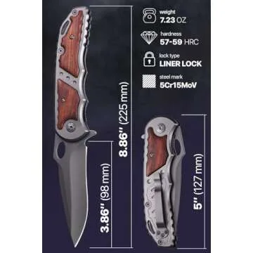 Grand Way Spring Assisted Knife - 5Cr15MoV Sharp Folding Blade - Pocket Knife with Wood Handle - Best Durable Tool for EDC Camping Survival Work - Mens Gifts Idea for Dad Husband Boyfriend 97010