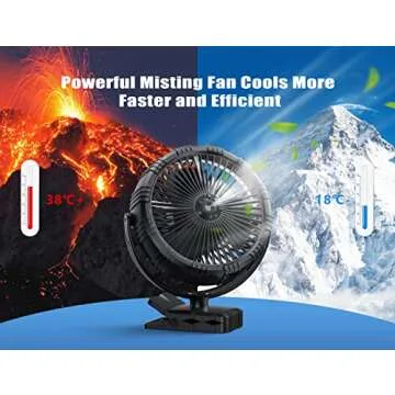 Show moreMeet the GRANDFAST Battery Operated Misting Fan, the ultimate solution for staying cool and refreshed during the heat of the day! This versatile fan is crafted meticulously for outdoor enthusiasts, musicians, campers, and anyone who needs a little breeze in oppressive conditions. Boasting a 10000mAh rechargeable battery, it delivers an astonishing battery life of up to 20 hours, ensuring you won’t break a sweat – even in the hottest environments. It’s engineered to provide a powerful misting option with customizable intensity through two adjustable spray modes and 360° rotation, allowing you to direct the cooling exactly where you need it most. Whether you're playing an outdoor gig, lounging on the beach, or enduring a power outage, this fan is designed to enhance your comfort and enjoyment.