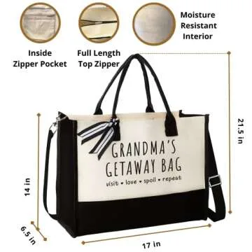 The high-quality materials ensure that this tote bag withstands everyday wear and tear. Constructed from durable heavy canvas and lined with a water-resistant interior, your grandma's belongings will remain safe and dry no matter where her adventures take her. The reinforced stitching provides extra support—ideal for carrying larger items like groceries, books, or even a change of clothes.