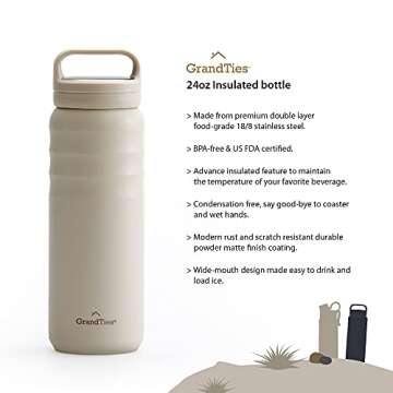 What sets the GRANDTIES water bottle apart is its amazing insulation properties. Your cold drinks will remain chilled for up to 12 hours, while hot beverages retain warmth for 8 hours. This is perfect for those who love to sip ice-cold water post-workout or warm tea during cool mornings. Additionally, the ergonomic design features a wide mouth that easily accommodates ice cubes, making filling and cleaning a breeze. The 24 oz capacity is perfect for gym sessions or day trips, ensuring you stay hydrated without being overly bulky.