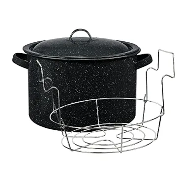 Show moreIntroducing the Granite Ware Enamel on Steel 12-Quart Water Bath Canner with Lid – a must-have kitchen essential for any home canning enthusiast! This exceptional canner is designed to meet all your culinary needs, serving not only as a multiuse pot but also as a versatile stock pot. Crafted with a rust-proof chromed steel jar rack, it perfectly accommodates up to 7 pint jars or half-pint jars, making it the ideal companion for creating delicious, homemade jams and jellies.