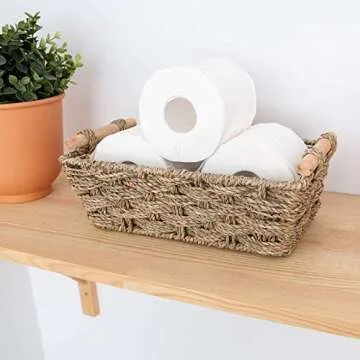 An additional bonus: these baskets are waterproof, ensuring your items remain protected without sacrificing style. Whether you're organizing pantry staples or displaying bathroom essentials, these baskets add character while ensuring a tidy appearance. Not only are they practical, but they also serve as decorative accents that enhance the ambiance of your space.