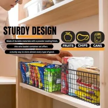 Granrosi Stackable Large Wire Baskets for Organizing — Set of 2 Snack & Chips Organizer for Pantry; Wire Storage Baskets with Handles; Large Bronze Chip Storage for Pantry