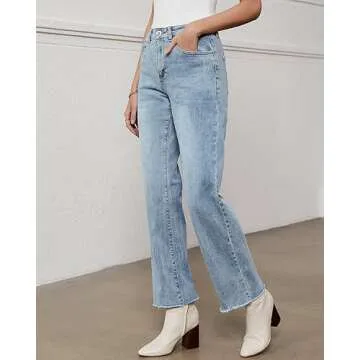 Introducing the GRAPENT Comfy Work Pants - the ultimate blend of comfort and style. These high-waisted mom jeans are designed for the modern woman who values both fashion and functionality. With a flattering cut that elongates the legs and a chic, frayed raw hem, these jeans effortlessly combine a laid-back aesthetic with a sophisticated silhouette. Made from soft, stretchy denim fabric, they provide all-day comfort while ensuring you maintain a polished look, whether at work or out and about....