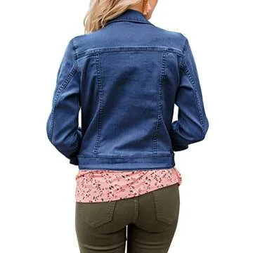 GRAPENT Women's Casual Basic Button Down Long Sleeve Stretchy Jean Trucker Denim Jacket with Pockets Blue Color Size Large US 12-14