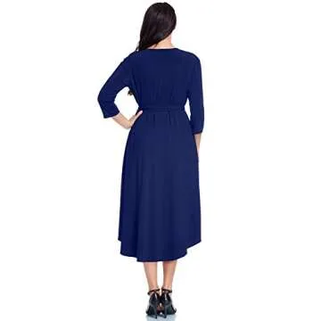 GRAPENT Women's Plus Size Solid V Neck Knee Length 3/4 Sleeve Hi Lo True Wrap Dress