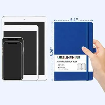 Graph Grid Paper Notebook/Journal - Classic Journal/Notebook with Ribbon Divider, Hardcover with Thick Paper, 5.3" x 8.26", Banded + Pen Holder +Inner Pocket - Deep Blue