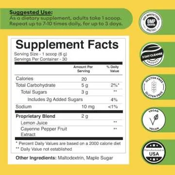 Grass Root Naturals Master Cleanse Detox Powder- Lemonade Detox 3-Day Plant-Based Supplement with Lemon, Maple Syrup, and Cayenne Diet, 6.34oz Container