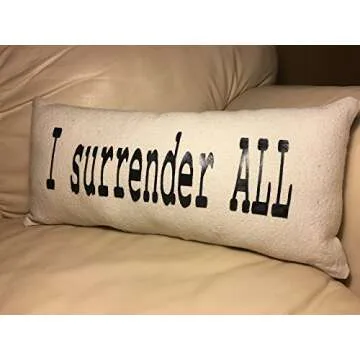 Grateful Life Creations - I Surrender All Handmade Lumbar Pillow with Custom Printed Pillow Cushion Cover| Decorative Throw Pillow for Home Décor | 7H x 16W - Beige| Made in the USA