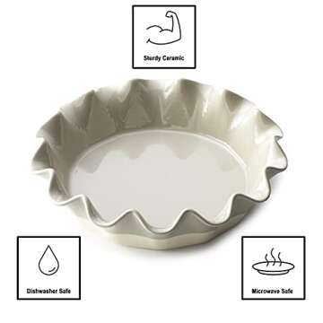 Gray Stoneware Pie Plate with Ruffled Edge - Baking Dish for Pastries, Brunch, Dinner